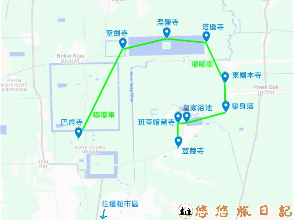 我們的吳哥窟小圈行程是從荳蔻寺開始,接著往班蒂喀黛、皇家浴池、變身塔等等走的逆時針的順路方向,以下就來介紹每個景點以及行程安排順序大公開!