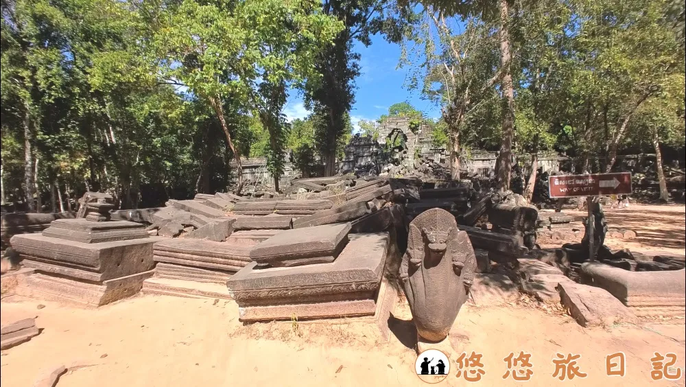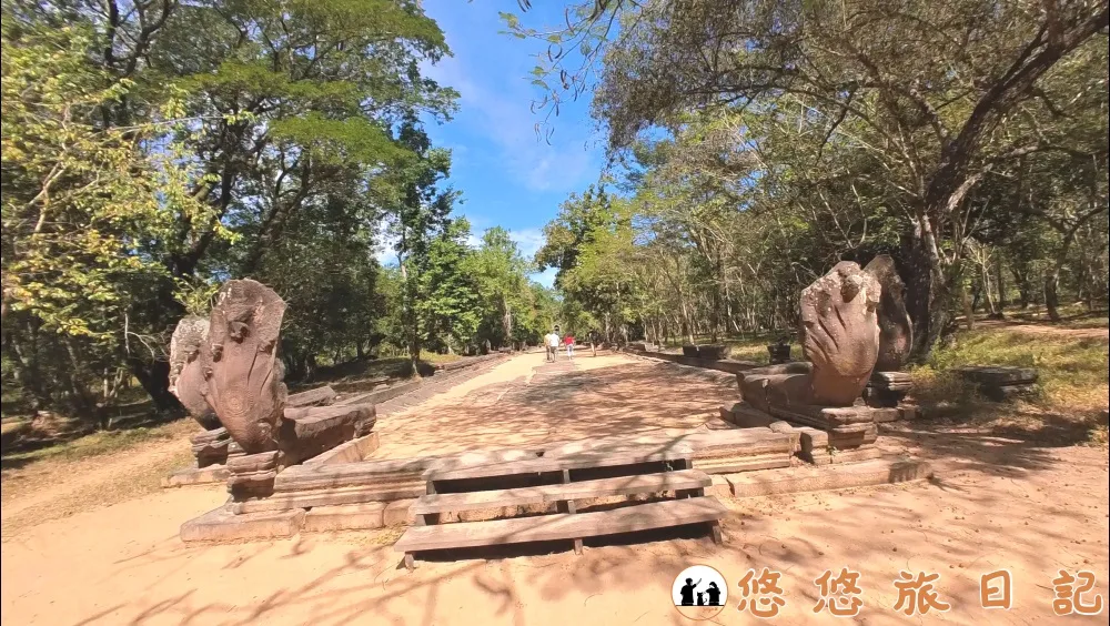 在引道的入口處,可以看到兩旁有蛇神(Naga)石雕,但是保存狀況都很差。