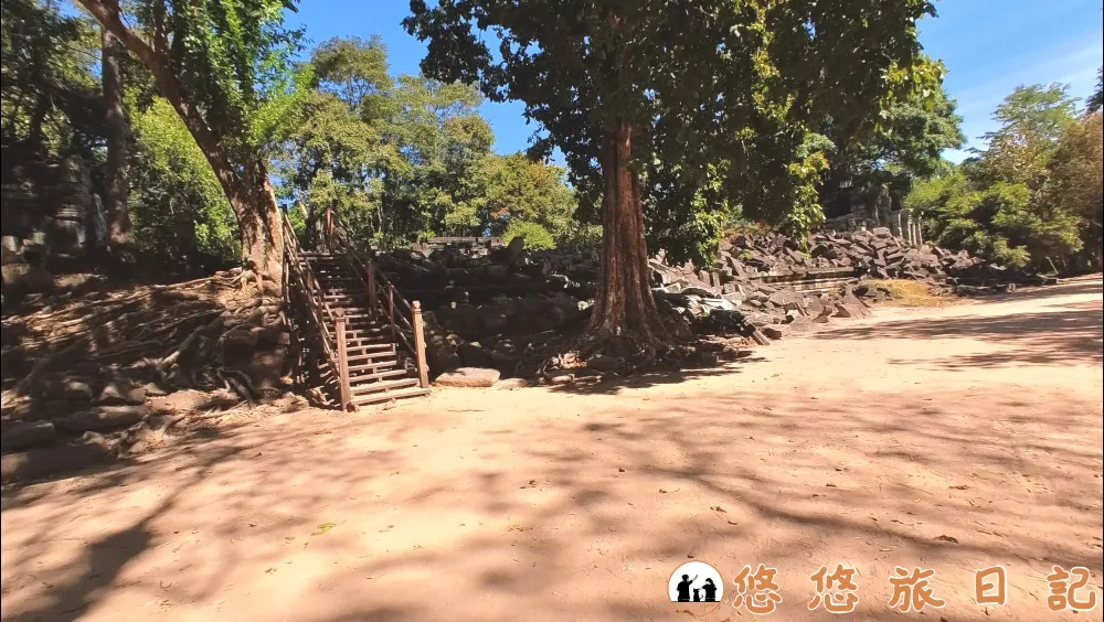 中央塔是崩密列的核心,東南西北四面都有出入口。這裡應該是寺廟最重要的建築,但現在已經變成一堆廢墟。據說宮崎駿畫《天空之城》時,就是以這片崩塌的景象作為藍圖!
