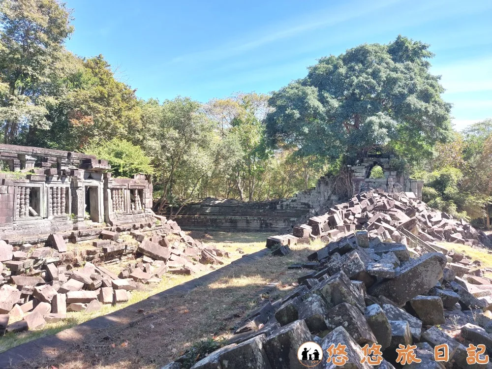 這座藏經閣被大樹和藤蔓蓋住,青苔爬滿了倒塌的石塊,有種破敗滄桑的淒涼感。