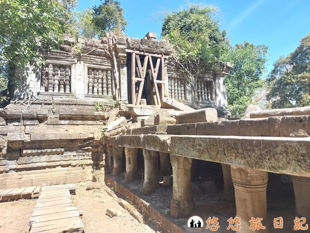 站在木棧道往下看,會發現一個被木條封住的密道。以前這條密道可以進去,裡面有個很漂亮的「園中園」,但現在為了遊客安全已經封閉了。密道入口上方有濕婆的石像雕刻,所以有學者推測這座寺廟是為了紀念濕婆而建的。