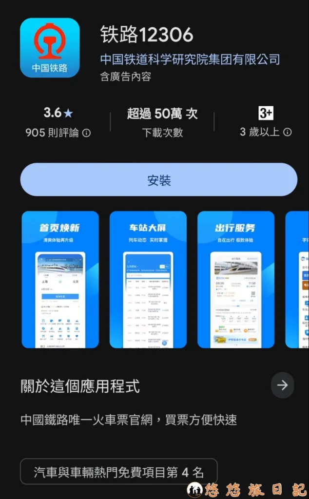 首先安裝鐵路12306這個手機APP,Google Play商店搜尋就可以找的到。