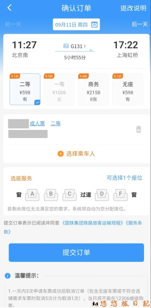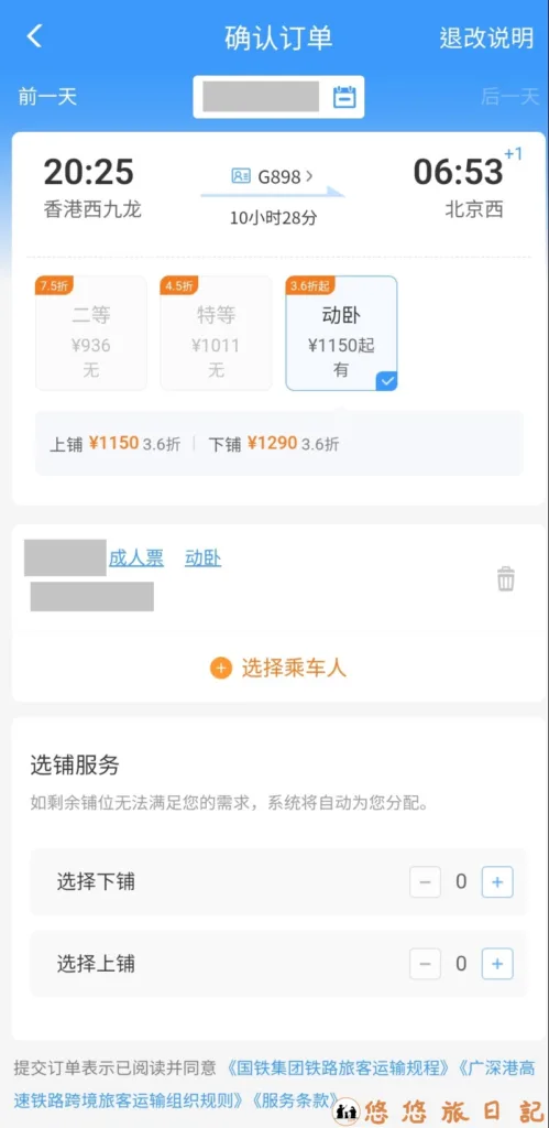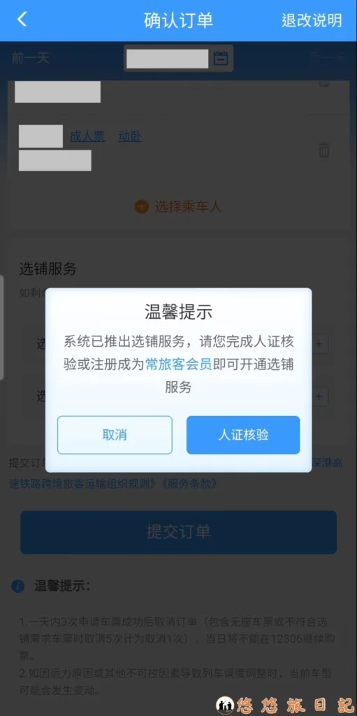 如果是一般火車座位的話可以直接指定座位偏好,但是如果是臥鋪火車的話,指定上下鋪需要人證核驗,蠻麻煩的需要層層驗證關卡…