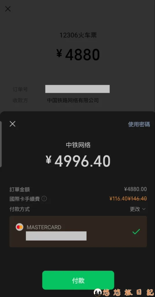 但是在微信支付裡面是綁國際信用卡、而且刷卡金額超過200人民幣的話,要加收3%的手續費。