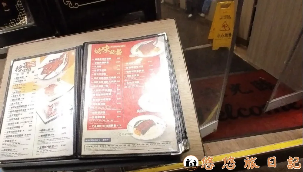 門口有放菜單,港式燒臘的品項很齊全,除了招牌的燒鵝飯以外,還有叉燒飯、文昌雞、油雞、切雞、燒肉、燻蹄等等,每份餐價格大約都在60~80港幣之間。