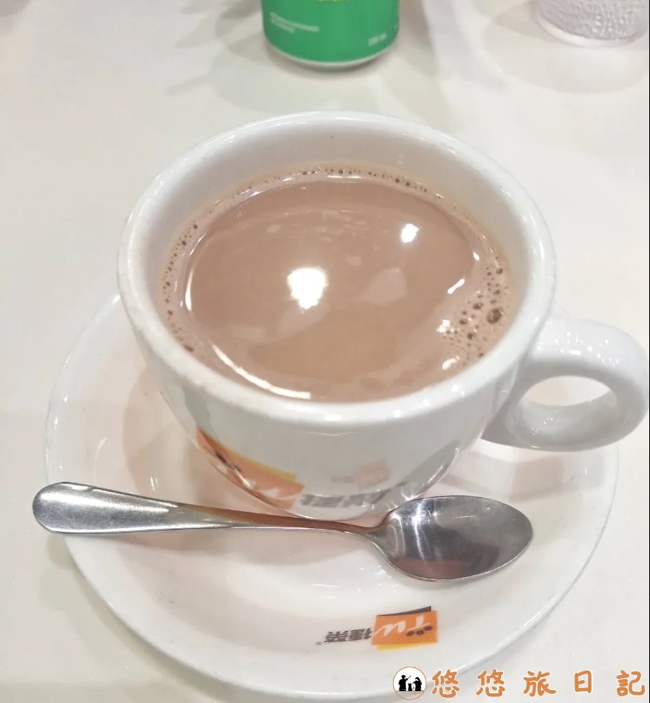 然後點一份餐會附一杯飲料,熱的不用加錢但是如果要冷的飲料要加港幣4元。