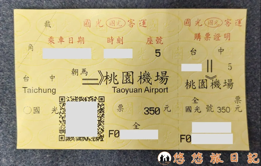 - 國光客運1860 桃園機場->台中:TWD$ 350。