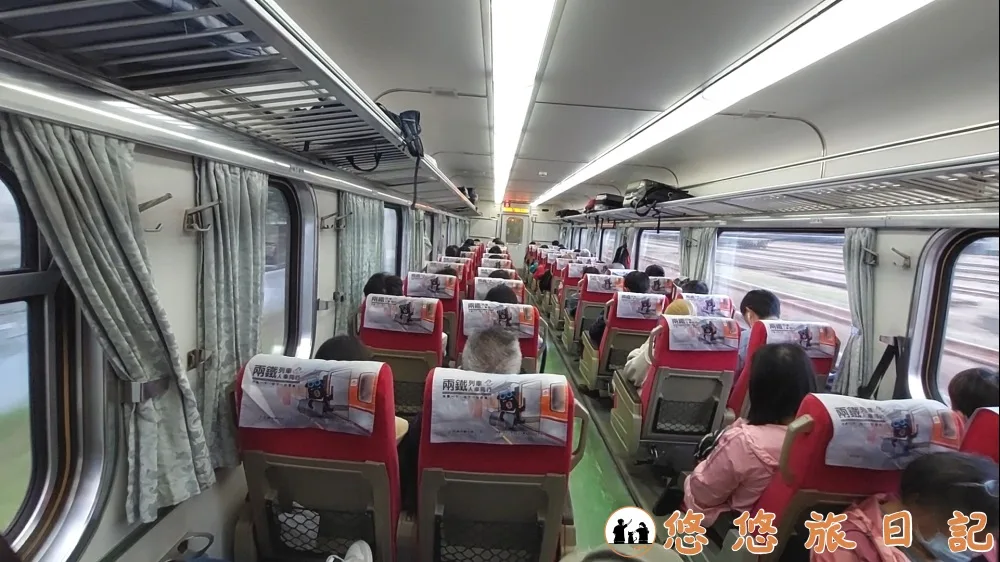 台灣的火車自強號車廂內長這樣,可以事先買票,如果沒有事先買票的話也可以刷悠遊卡搭火車(限定區間車、莒光號、自強號三種),但刷悠遊卡搭火車的話是沒有座位的哦。