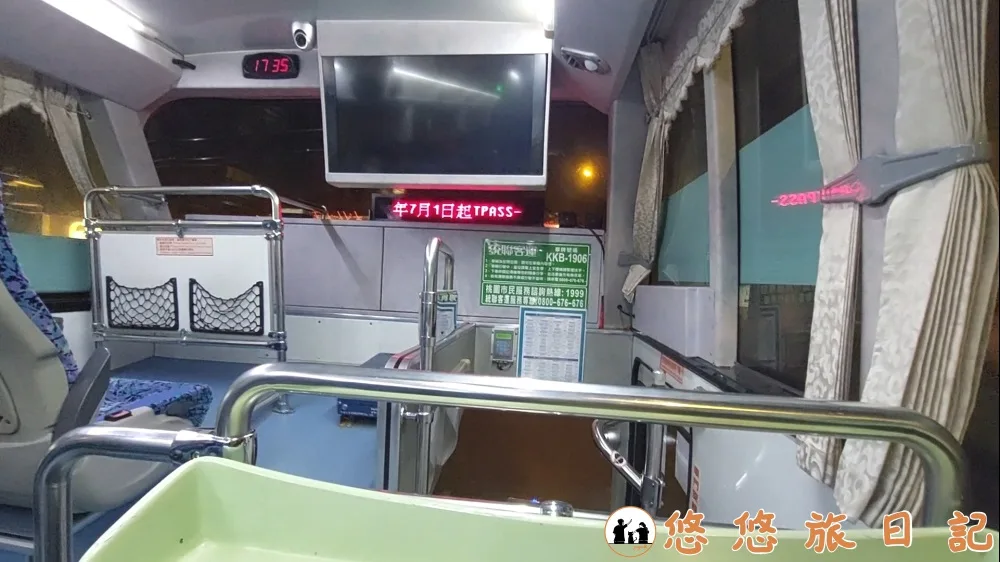 到桃園火車站後轉搭706號公車,上車前可以把大行李放在行李艙內。公車車內長這樣,很像是客運用的車型。